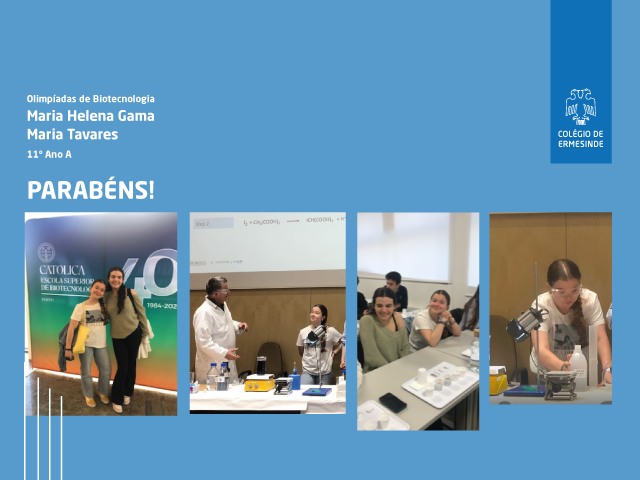 As alunas Maria Helena Gama e Maria Tavares, do 11º Ano A, representaram o Colégio de Ermesinde na Final Nacional das Olimpíadas de Biotecnologia que decorreram na Universidade Católica.